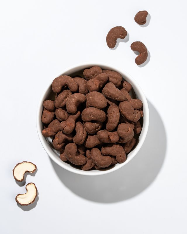 Vychutnej si ručně vybrané kešu zalité pořádnou vrstvou hořké čokolády a objev svět snacků plných chuti i prospěšných látek v jednom.