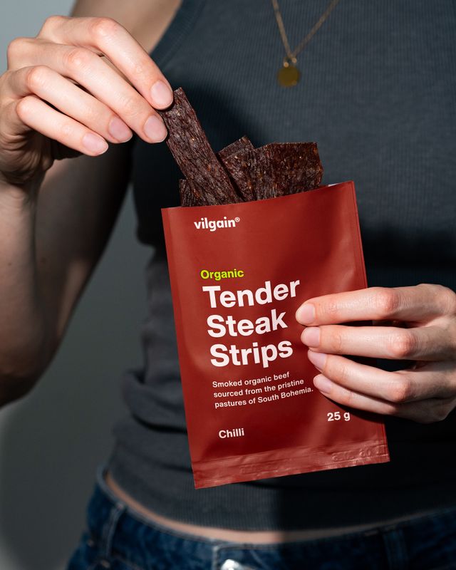Vilgain Sušené steakové proužky BIO – chilli 25 g