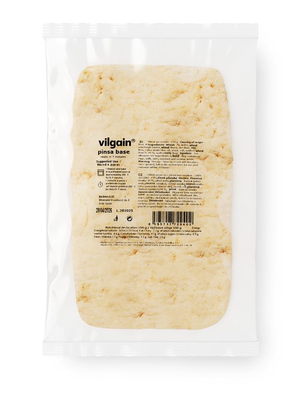 Balení: 250 g100 gEnergetická hodnota884 kJ / 211 kcalTuky1,9 g- z toho nasycené mastné kyseliny0,4 gSacharidy40 g- z toho cukry0,9 gVláknina2,1 gBílkoviny7,4 gSůl1,2 gIngrediencePšeničná mouka 40 %, pitná voda, pšeničný kvásek (pitná voda, pšeničná mouka), rýžová mouka, sójová mouka, extra panenský olivový olej, droždí, sůl, pšeničná sladová mouka 0,08 %, ječná sladová mouka.Upozornění pro alergiky: Alergeny jsou vyznačeny tučně ve složení produktu. Může obsahovat žito, vejce, mléko, skořápkové plody, hořčici a sezamová semena.