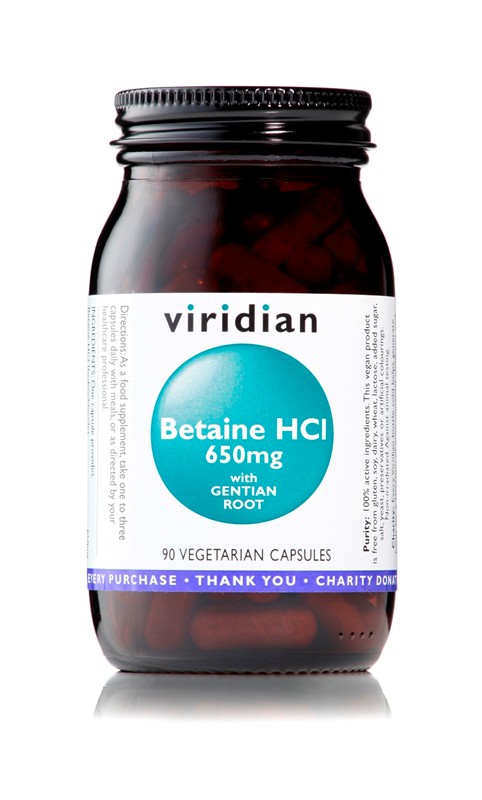 Tento doplněk obsahuje Betaine HCl spolu s kořenem hořce. Jedna kapsle obsahuje 650 mg Betainu HCl. Betain je aminokyselina, která se podílí na metabolismu homocysteinu.