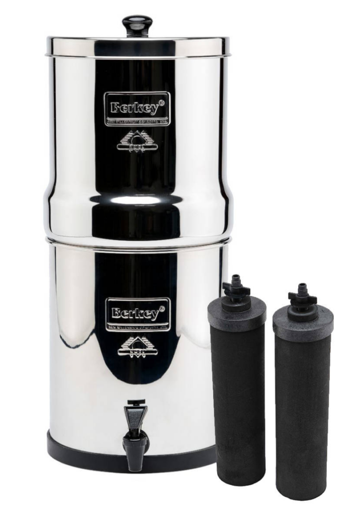 Filtrační systém Big Berkey má kapacitu 8,5 litrů a je vhodný pro páry a menší rodiny, pro použití na cestách nebo na chalupě.