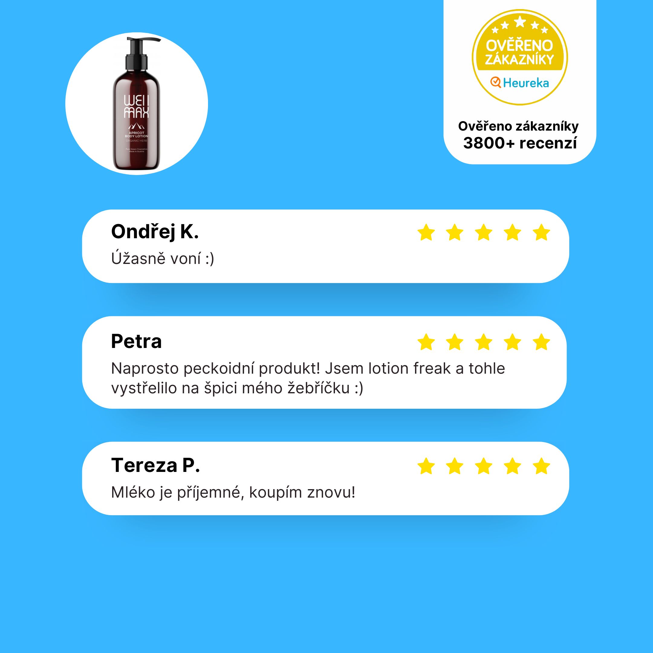 Wellmax tělové mléko intenzivně hýčká pokožku kombinací prvotřídních účinků blahodárných olejů a cenných bylinných extraktů. Emulze s extrakty z BIO divoké růže, květu černého bezu a lípy malolisté vytváří jemnou texturu, která se snadno a rychle vstřebává do pokožky. Zajistí tak dokonalou hydrataci i pro velmi suchou a citlivou pokožku. Pečující oleje ji aktivně zjemňují a vyživují. Pokožka po aplikaci zůstane naprosto dokonale hebká a provoněná svěží ovocnou meruňkovou vůní.