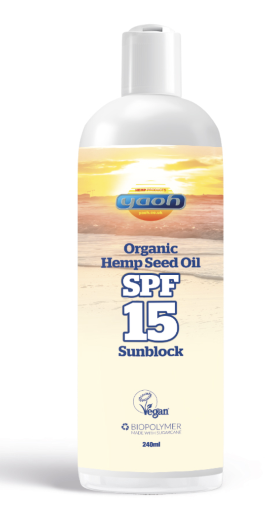 Yaoh – Opalovací krém s olejem z konopných semínek, SPF 15, 240 ml